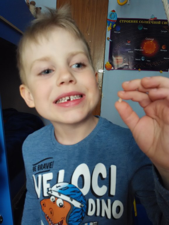 Прикольно! :) А как долго шатался зуб прежде чем выпасть? У моей дочки уже неделю шатается тот же зуб, что у Вашего сыночка на фото. Она уже ждет ,что ей как свинке Пеппе фея монетку подарит.