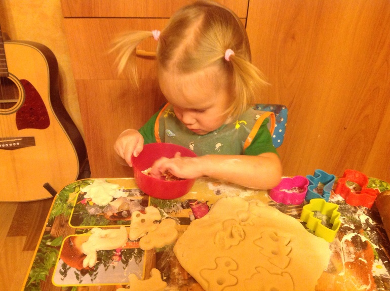 Сегодня день теста. Я предполагала, что Алисе понравится, но что она целый день будет заниматься соленым тестом, я даже не думала.