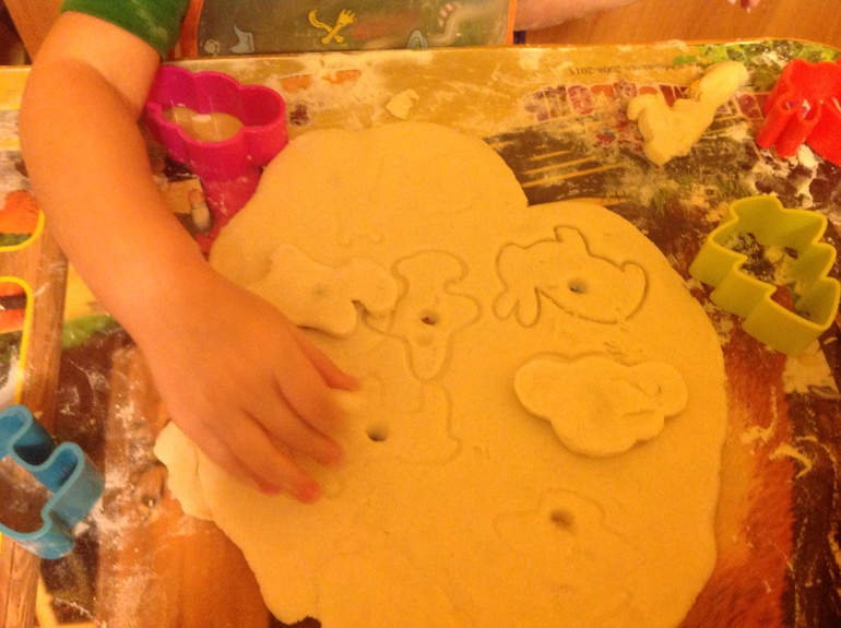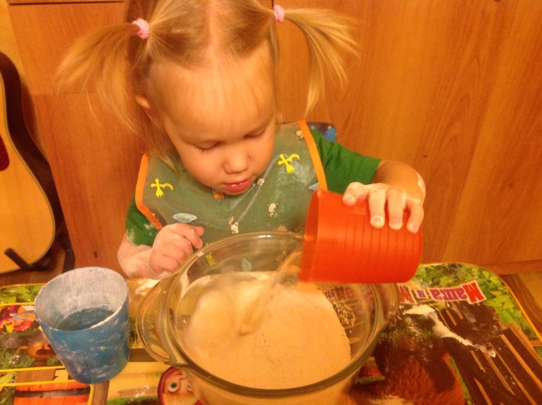 Сделали соленое тесто, Алиса все сама перемешивала, только в конце помогла.