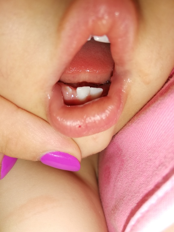 Девчонки, вылезли первые 2 зуба в 4,5 месяца... Верхние 4 зубы вылезли в 6,5 месяца... И вот сейчас нам 8,5 месяцев, лезет 7-ой зуб пока один и мне кажется он очень криво лезет... Подскажите пожалуйста по фото, это нормально или нет?