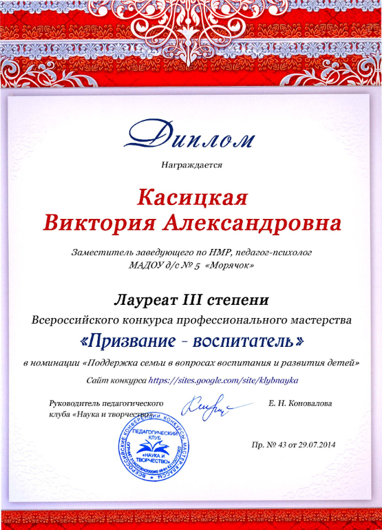 Перед декретом отправляла работы на конкурс "Призвание - воспитатель", участвовала в трех номинациях, сейчас пришли результаты, оказалось, что заняла 1,2 и 3 места в номинация... Надо же так умудриться :)))