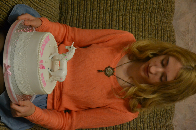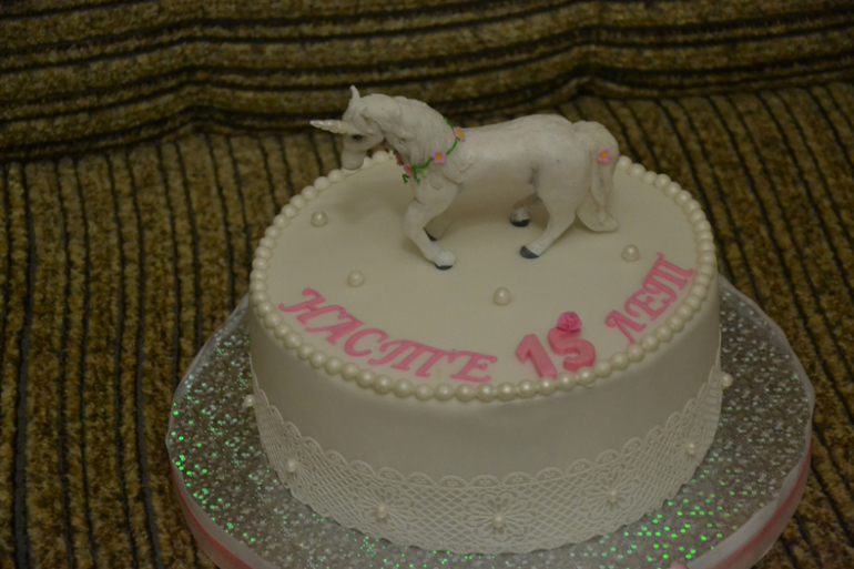 А вот такой торт мы заказали Насте, она сейчас увлеклась единорогами :)
