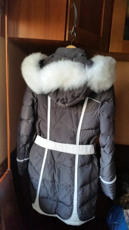 Пуховик, одет 2-3 раза. Мех натуральный. Красивый капюшон. Маркировка L, на мой взгляд отлично будет и на 44 и на 46. Фото не передало, но он весь аж светится!