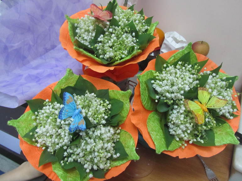очень мило и по сезону букеты из ландышей душистые и майские!