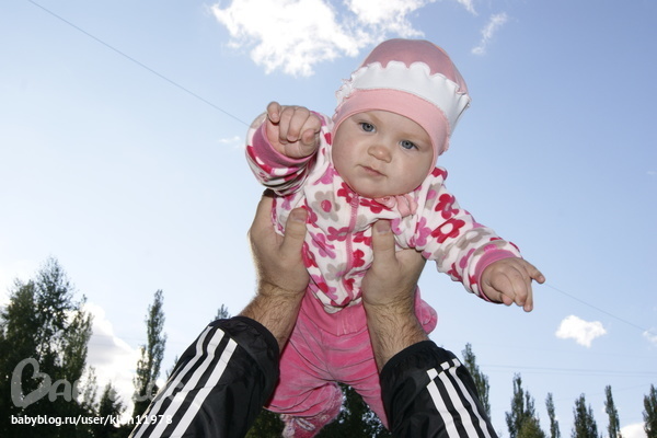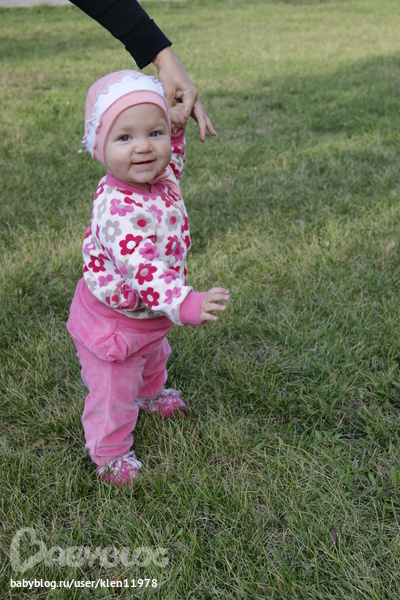 Встает везде, где есть опора.Ходить пока особо не хочет.Сын уже в это время бегал! Стала проявлять характер.Если не хочет сидеть на руках выгибается, мол пустите!Любит, когда вся семья в сборе, столько радости, визгу! Радуется, когда Макс приходит со школы, ползет его встречать.Максим тоже ее любит, приятно смотреть как он с Полей нянькается.