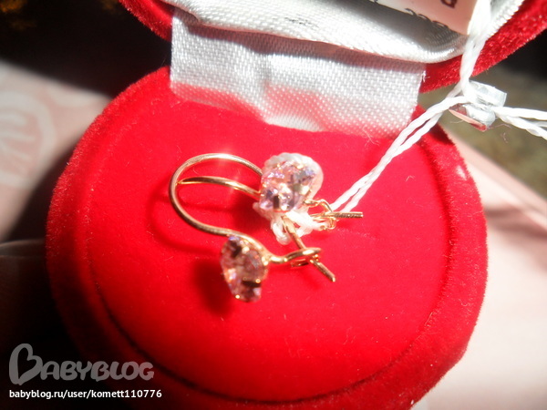 У нас такие же сережки, только ушки еще не прокололи. Хотела на годик, но не получилось, а вот теперь как получится.