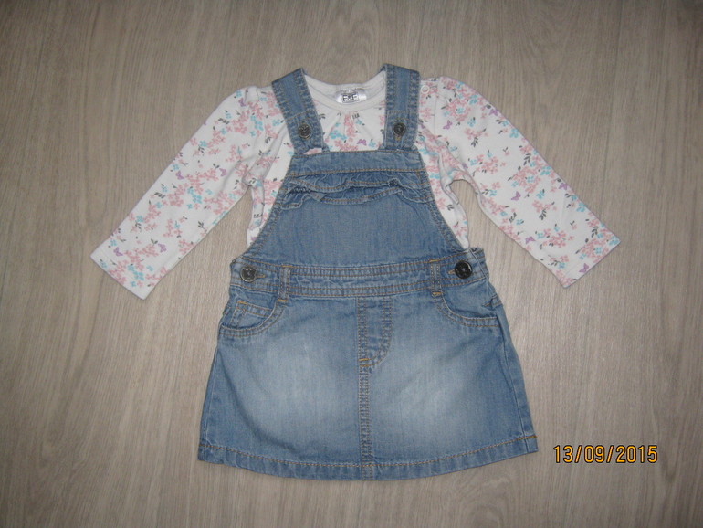 Лот 6. Комплект Tesco из 2 предметов (боди + сарафан), р-р 9мес, 500руб