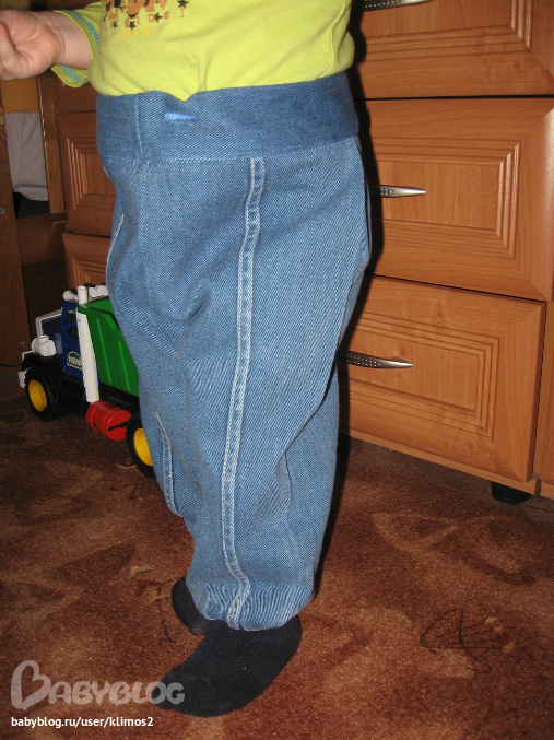 Сшила вот такие брючки (из рукавов джинсовки, которую старший носить отказался) на весну для младшего.