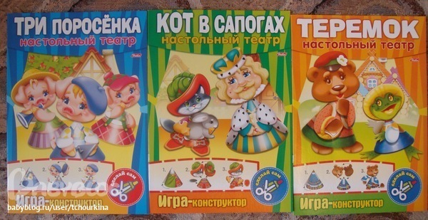 У нас уже есть одна такая книжка (Колобок), я вырезала и склеила всех персонажей, Вове очень понравилось. Купила еще 3 книжки: