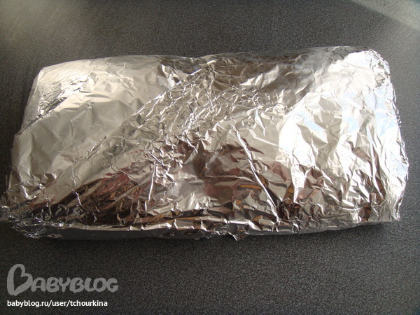 Заворачиваем хлеб в фольгу, собирая ее наверху: