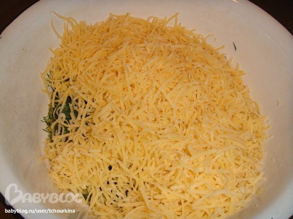Натираем туда грамм 200 твердого сыра (у меня смесь российского и маасдама):