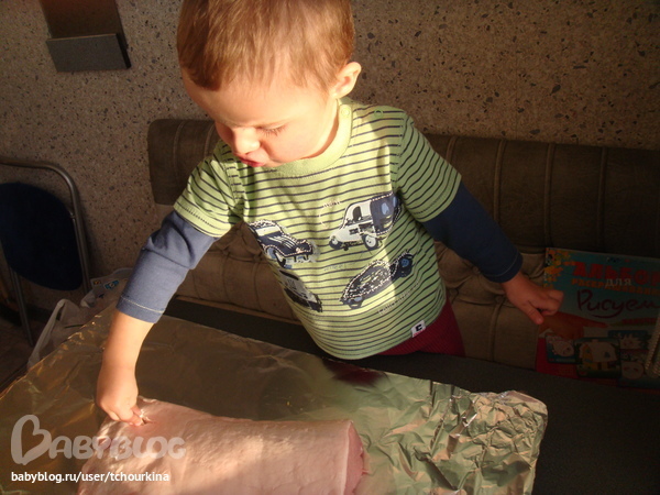 Потом мы с ним гуляли. У нас холодно, но солнечно. Первый день в теплом комбезе и новых меховых сапогах. Побесились на детской площадке (снимать было некогда!), покатали машинку, посмотрели на трактор с прицепом.