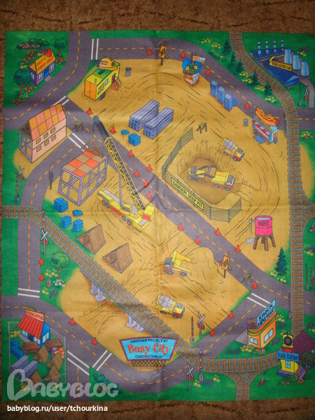 Вообще то их 6 разных в коллекции (парк развлечений, ранчо, деревня, дино-парк, мегаполис), но я конечно купила стройку! Вова оценил! С утра уже вся его строительная техника перекочевала на этот коврик.