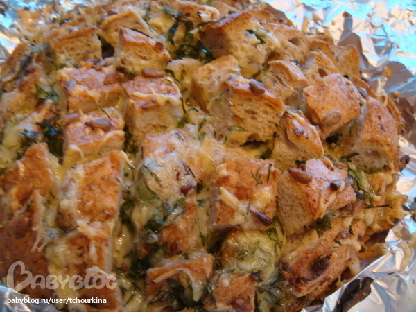 Подойдет любой круглый хлеб. Его надо нарезать почти до донышка на кубики: