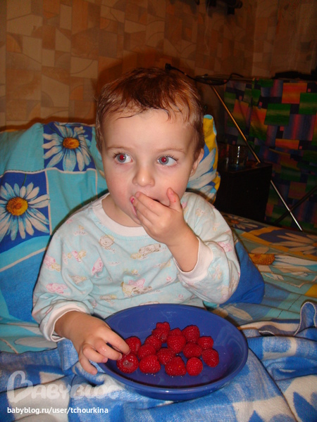 На этой неделе Вова у нас был мишкой - первый раз попробовал и сразу распробовал малину: