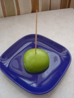 Сделана из 1 груши и 1 яблока, скреплена сливками: