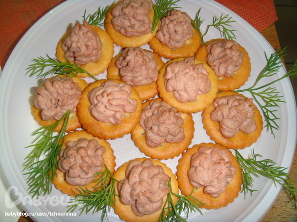 Специально для наших родственников каждый раз тщательно фоткаю ВСЕ блюда. Итак. Крекеры с печеночным паштетом: