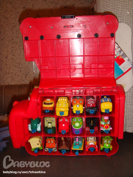 И еще купила железную дорогу и 17 паровозиков мультяшных, которые будут внутри этого большого паровоза: