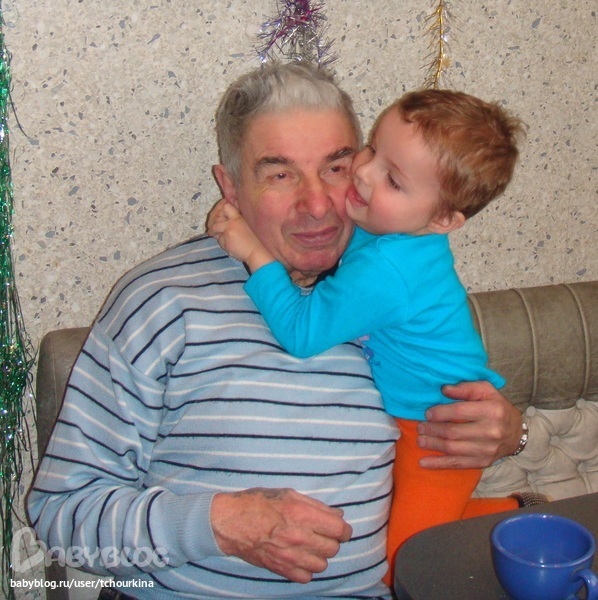 А это прадедушка Сёма приезжал. Подарки привез, а мы его кофе напоили, Вовка обнимал, целовал и кормил с ложечки сахаром: