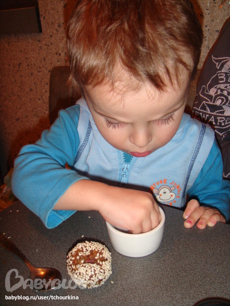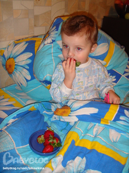 И вообще он у нас сейчас всё пробует-пробует-пробует! Вот ест клубнику как лягушата из книжки: