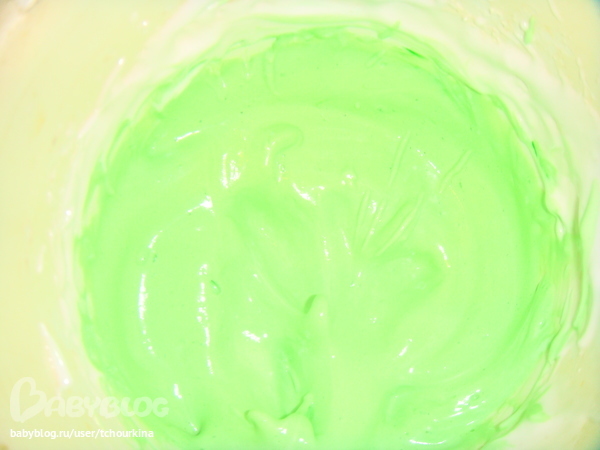 Для зеленой глазури понадобится 2 белка, сахарная пудра, краситель и ароматизатор: