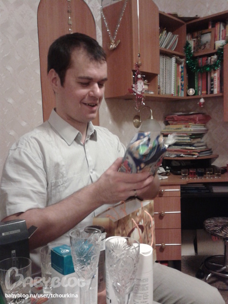 Дождались гостей, наелись, напились (шампанское и мартини), убрали стол и сразу после боя курантов распаковали свои подарки. Доче все понравилось: