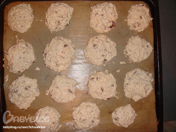 Ложкой разложить комочки теста на застеленный бумагой противень на достаточном расстоянии друг от друга.