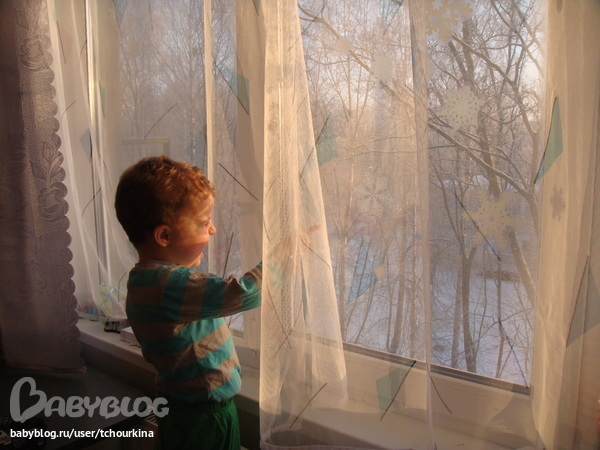 После многодневной оттепели и слякоти у нас сразу резко мороз и солнце. Гулять не пошли, смотрит в окно на солнышко: