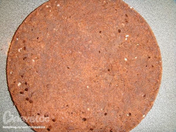 Добавить 1 стакан муки, 1 ч.л. разрыхлителя, ароматизатор и лопаткой замесить тесто. Вылить в форму, испечь бисквит. Остывший бисквит разрезать на 3 коржа: