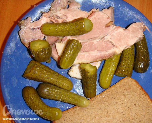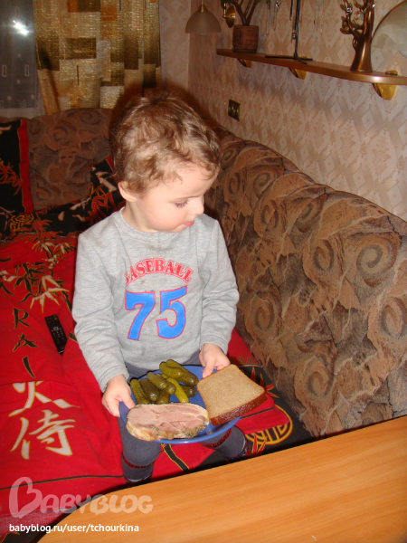 А тут я себе приготовила на ужин тарелку. Но Вова ее увидел и решил прибрать к рукам:
