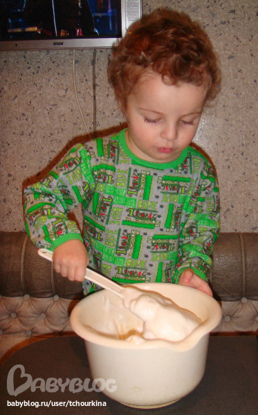 Пока я готовлю обед, Вова тоже не сидит без дела - готовит свои блюда: