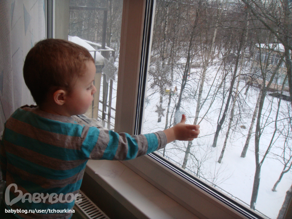 А я вот решила со всех поверхностей поснимать наклейки новогодние. Вова сначала помог мне ото всюду снять снежинки, а потом тщательно ВСЕ приклеил на кухонное окно...
