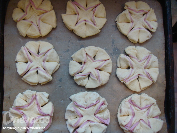 Попарно вывернуть лепестки. Разложить на противне и дать подойти: