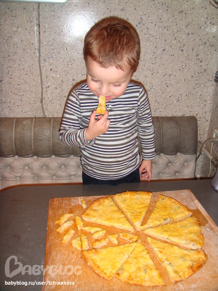 Но Вовик всё же попросил пиццу. Пришлось быстро делать "4 сыра":