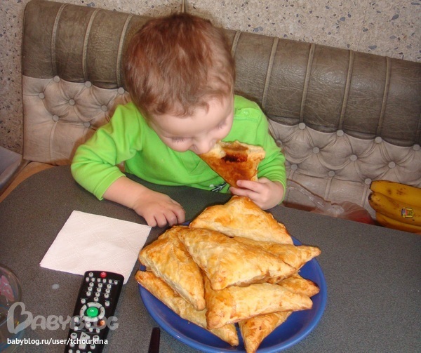 Испекла слоеные пирожки с повидло, хачапури, завитки с колбасой. Все рецепты с пошаговыми фотками.