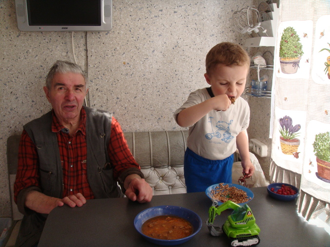 А тут прадедушка Сёма "засомневался", что Вовик сам может кушать и Вова доказывает обратное: