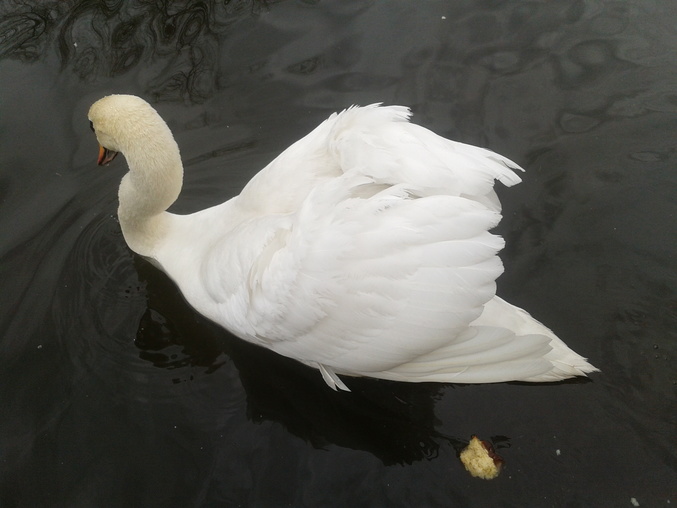 Вова у нас теперь лебедь (последние пару недель был цыпленком по собственному выбору). И часто ходит с папой в парк кормить лебедей: