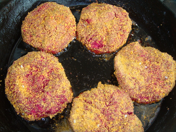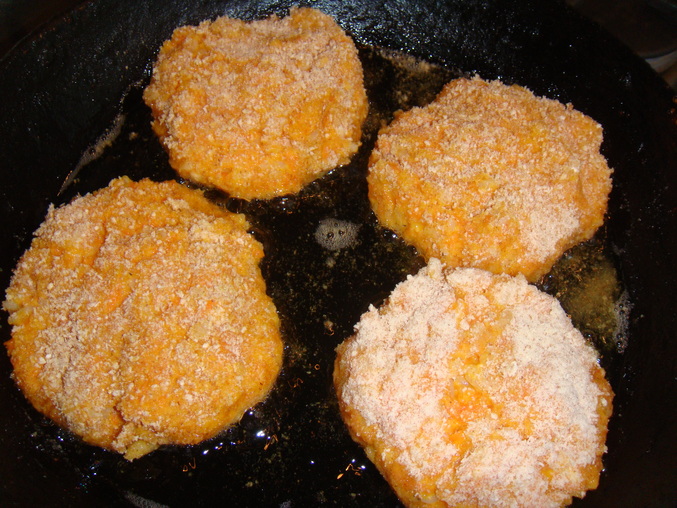 Запанируйте их в сухарях, обжарьте биточки до образования румяной корочки: