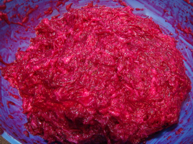 Сваренную свеклу очистить, пропустить через мясорубку: