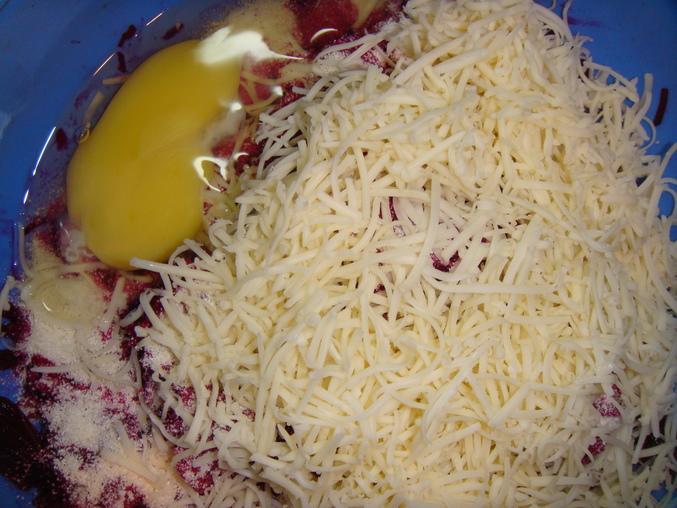 Если свекла молодая и сочная, я добавляю еще и плавленный сырок для скрепления массы: