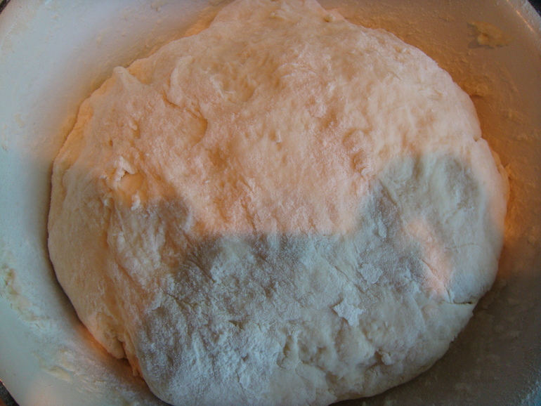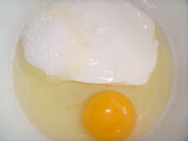 Замесить тесто из сметаны, яйца, сахара, соли и муки: