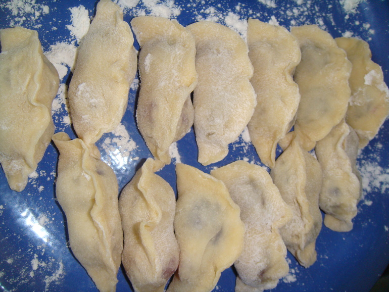 Готовили прабабушкины пельмени, уральские пельмени, вареники с вишней, завитки с бараниной.