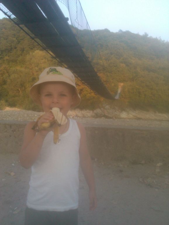 А в Лазаревском жуткая жара, влажность, солнце. Но на Вовкин аппетит это никак не повлияло: