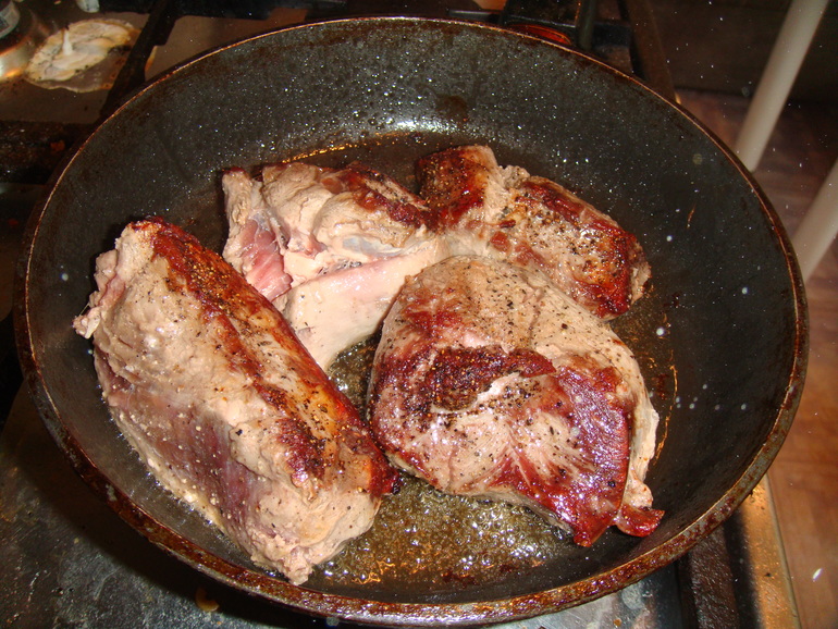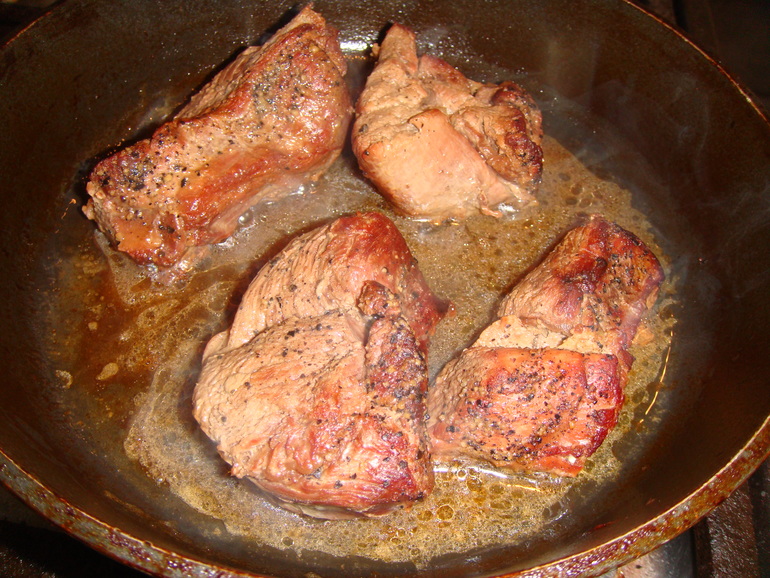 Быстро обжарить в раскаленном масле для запечатывания соков: