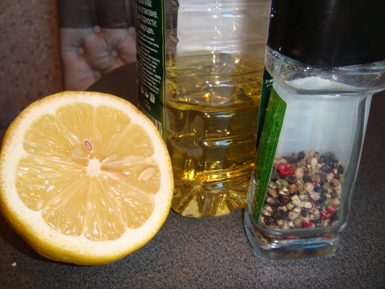 Залить маринадом из лимонного сока, растительного масла и смеси перцев: