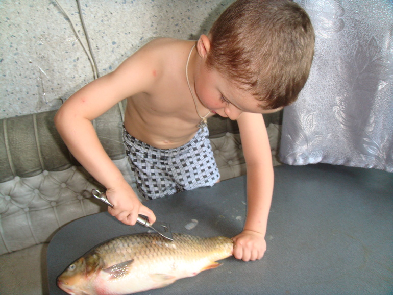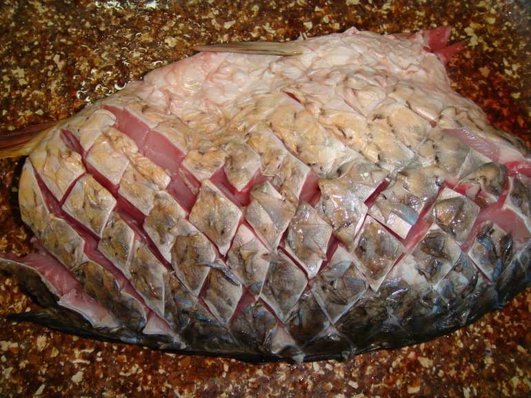 Итак, чистим от чешуи и внутренностей карпа: