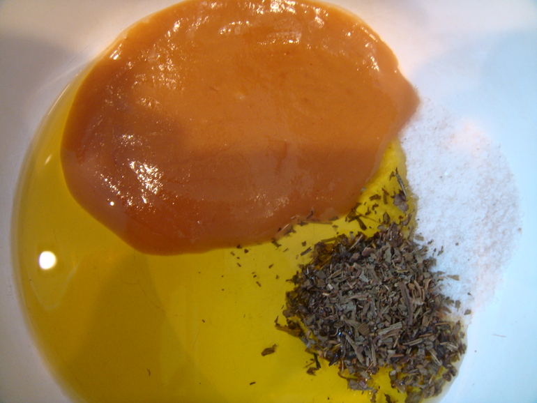 Приготовить намазку: растительное масло, горчица, соль, тархун: