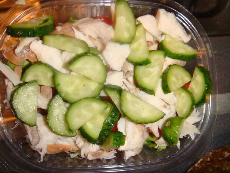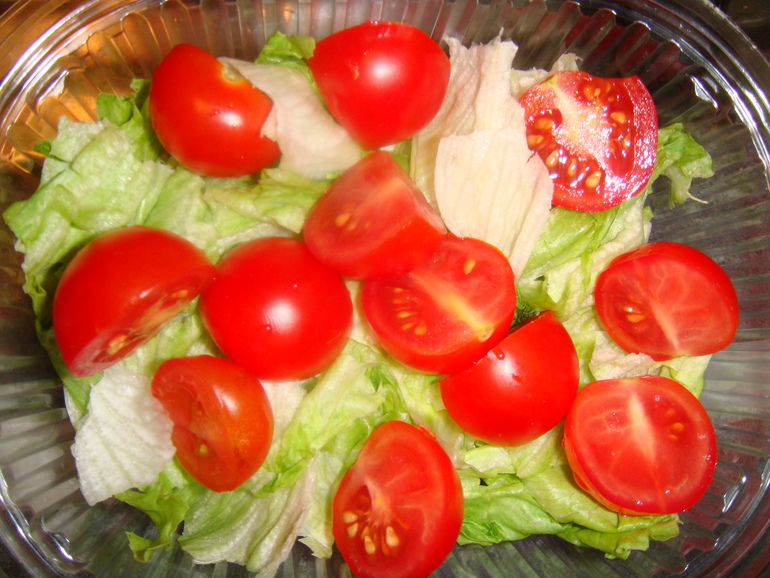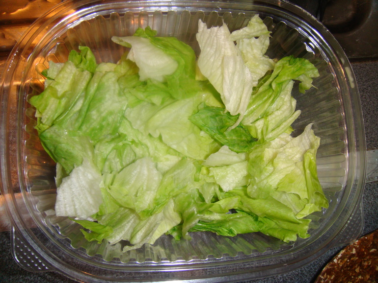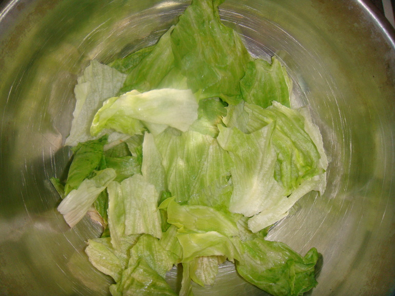 Нарвать листья любимого салата (я готовлю на обед на работу, поэтому сразу в контейнер):