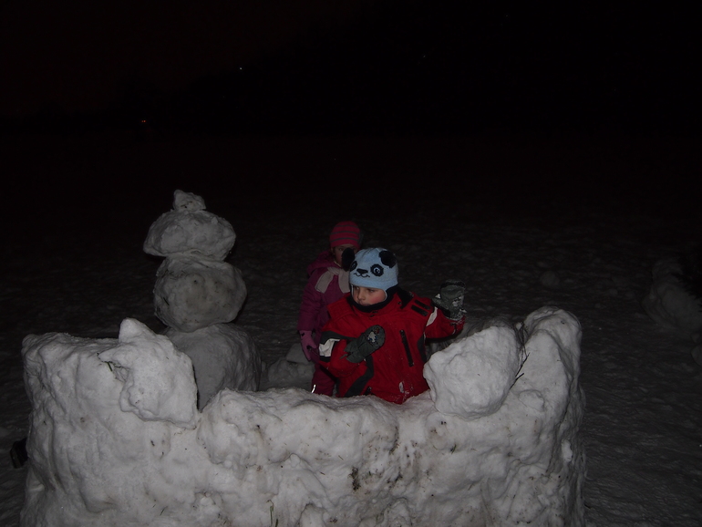 А еще Вова с папой строили снежные крепости: