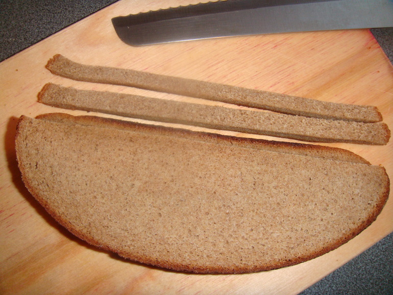 Уже несколько раз показывала их в своем дневнике. Но в этот раз делала их по новой технологии. С ржаного хлеба срезать все корки:
